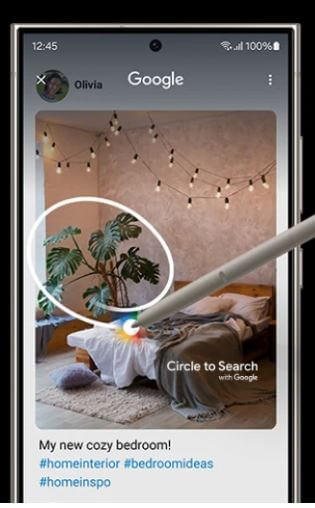 새로운 검색방법, 서클 투 서치를 소개합니다. 소셜 네트워크나 웹 페이지를 스크롤하다가 궁금한 것이 생기면 S펜이나 손가락을 사용해 동그라미를 쳐보세요. 즉시 Google 검색 결과가 나옵니다.